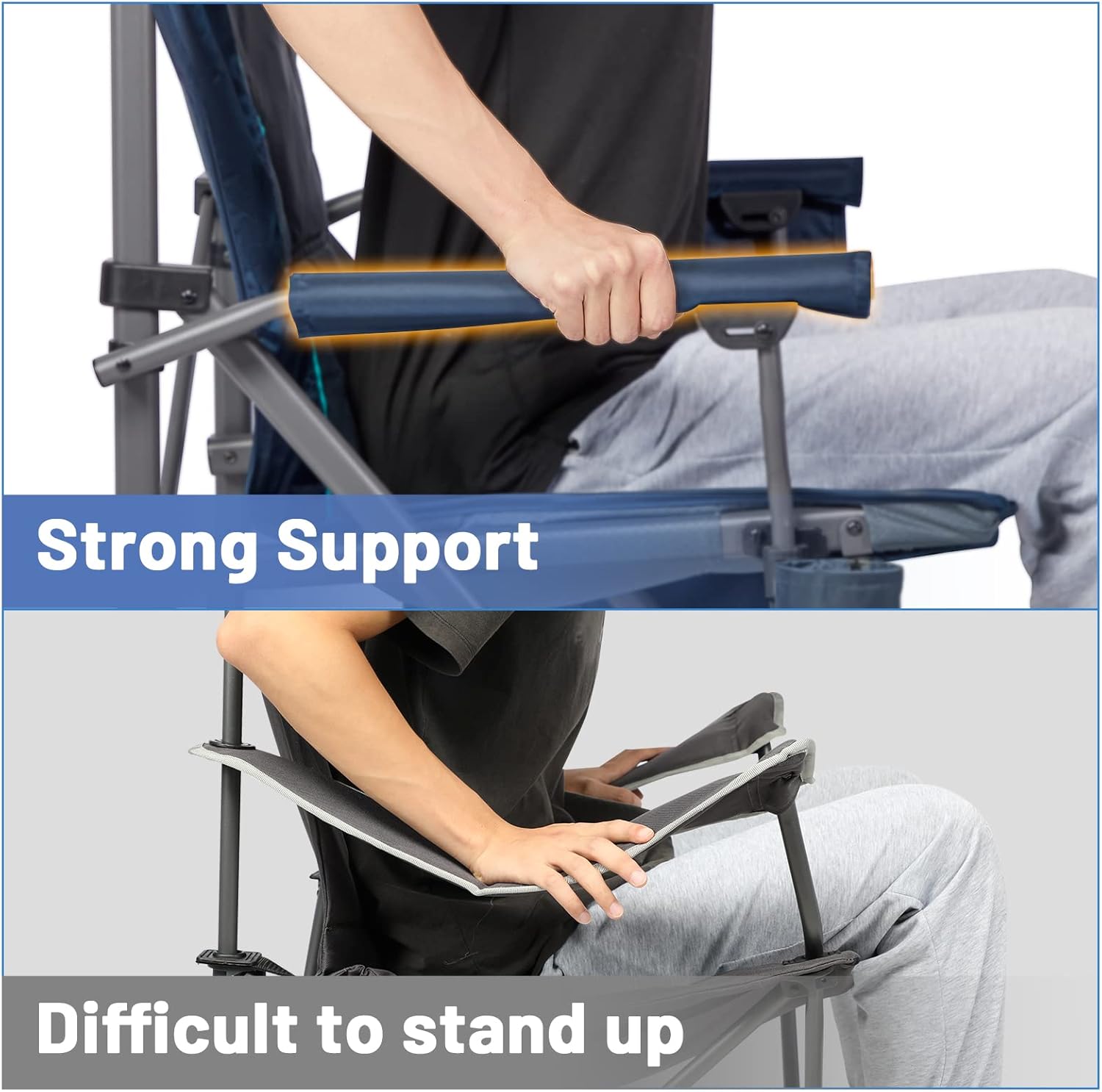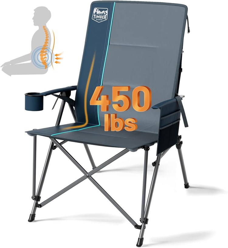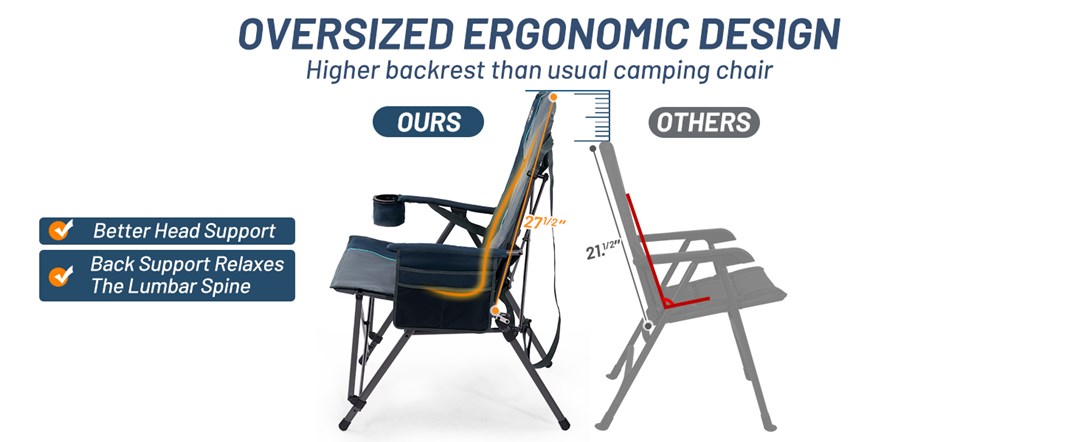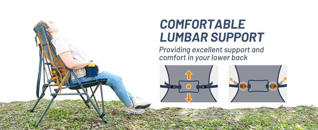 - LUMBAR SUPPORT FOR MAXIMUM COMFORT: This heavy-duty camping chair includes adjustable lumbar support, upholstered cushions, and hard armrests, all designed to help you relax more. Its ergonomic design conforms to the natural curvature of your spine, providing you with excellent support and comfort for long hours of sitting.